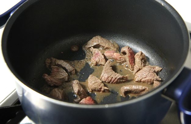 ⑤ 냄비에 소고기, 국간장1. 참기름0.5 를 넣고 조물조물한 후.. |