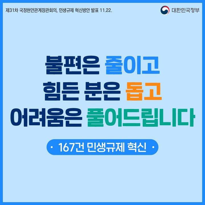 지난 11월 21일 정부가 서민과 소상공인의 크고 작은 불편을 해소하는 민생규제 혁신방안을 발표했습니다. 총 167건 중 알아두면 유용한 내용을 골라 알려드리겠습니다.